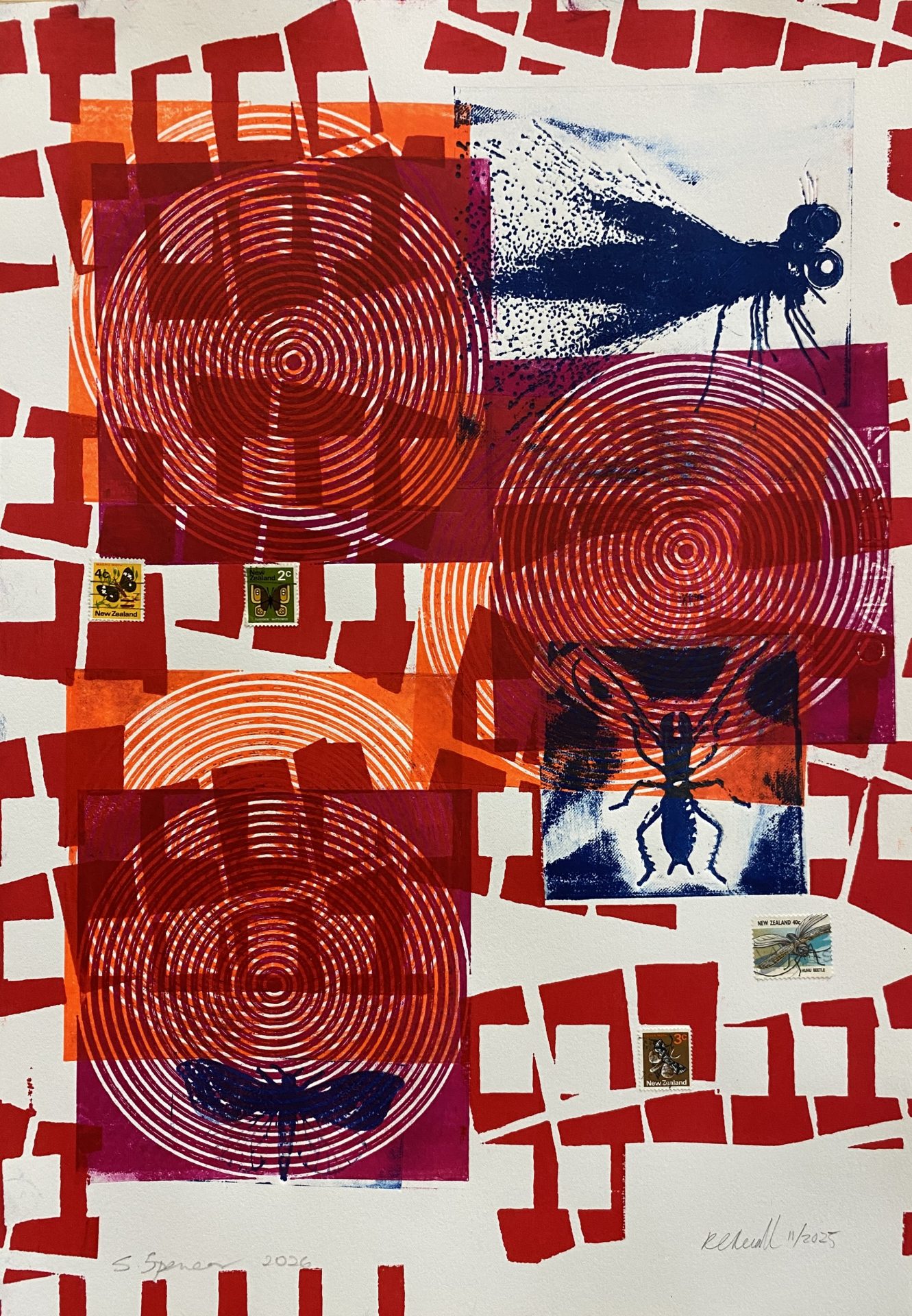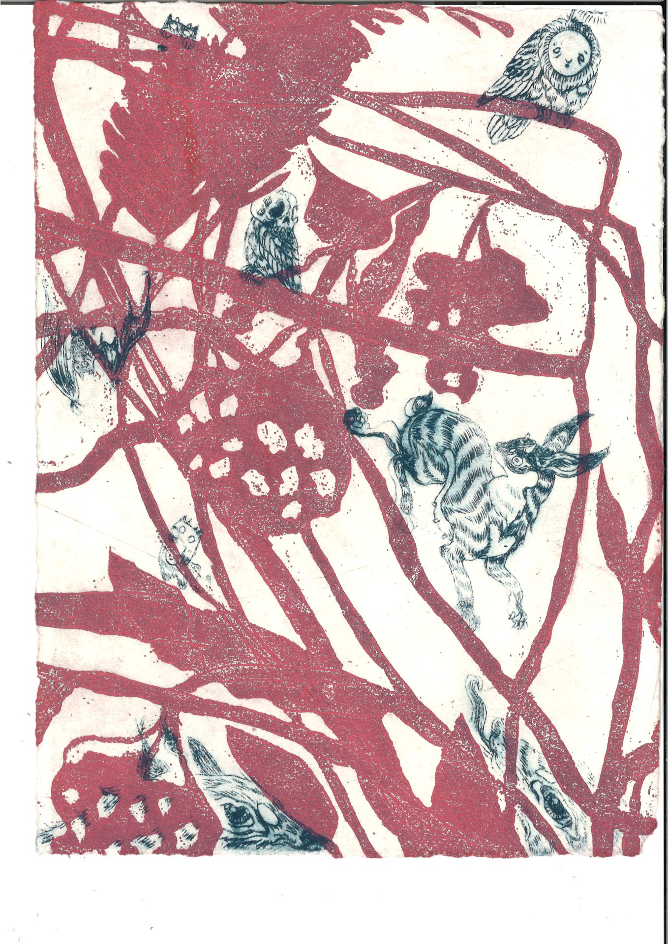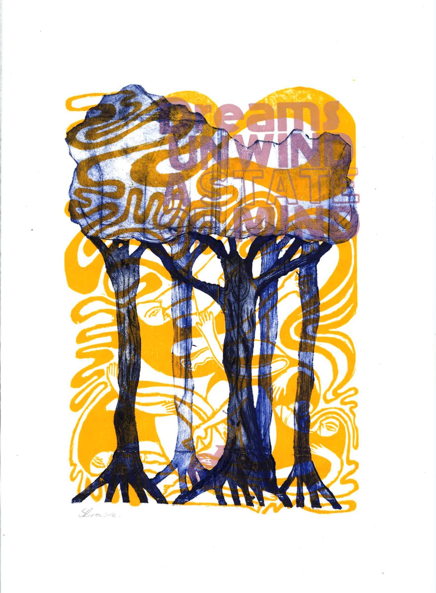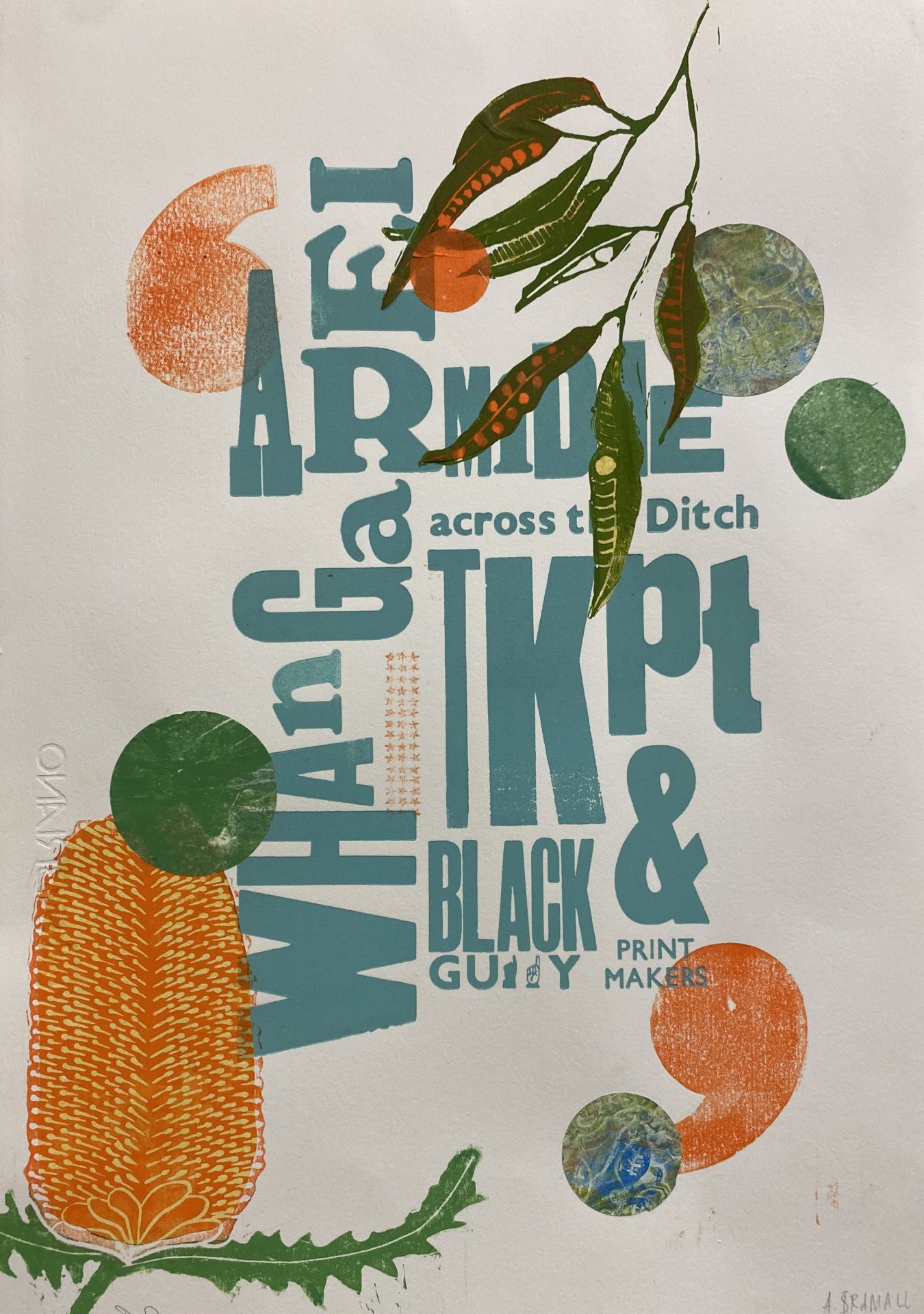 A collaborative printmaking project challenging participants to embrace experimentation and freedom in printmaking. Each participant provides a print to a member of the other collective who then responds to the artist’s imagery and approach. Each participant is relieved from conceiving an entire finished work, and instead, brings their own flavour, technique and finesse to another’s. The results are anyone’s guess!