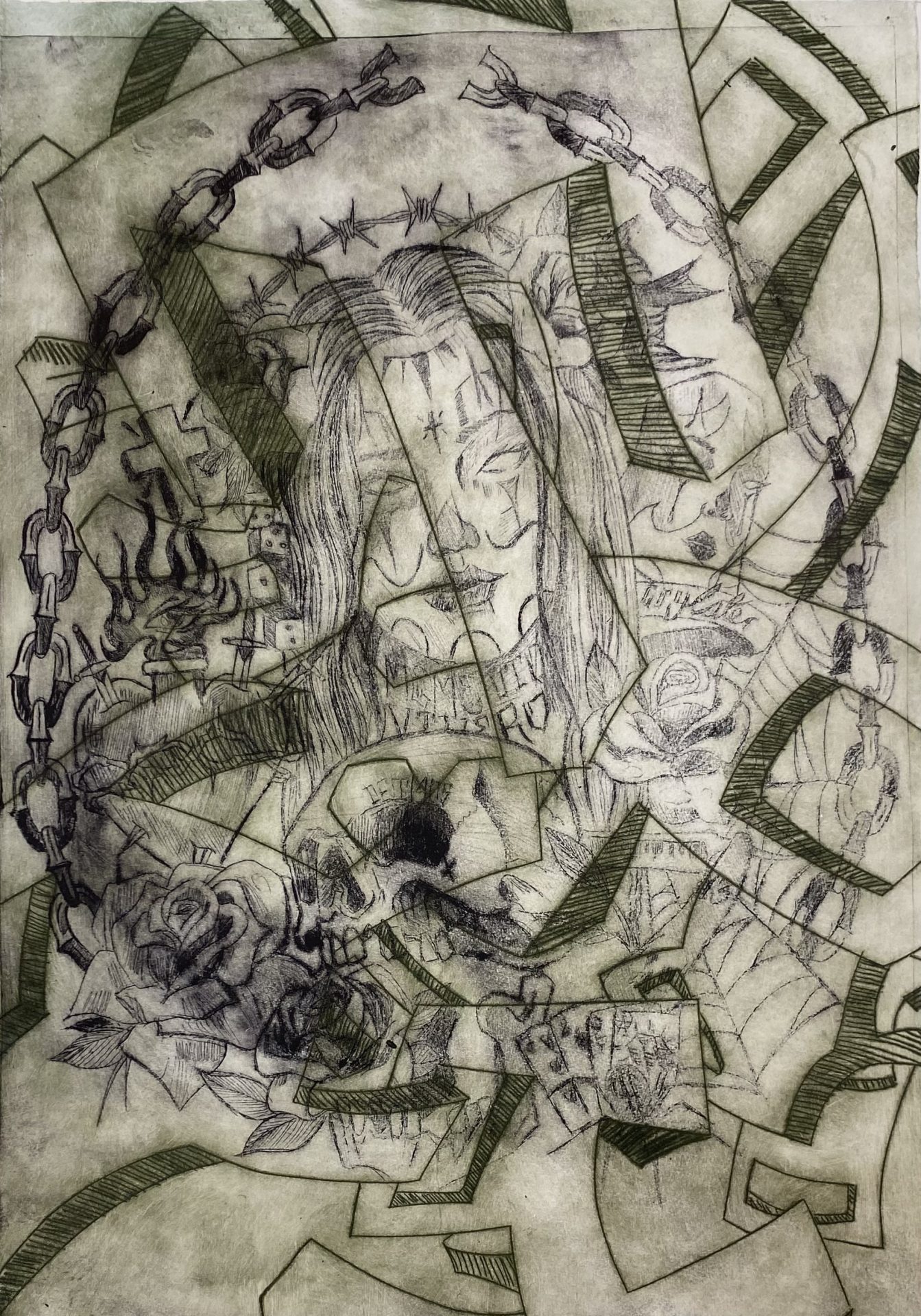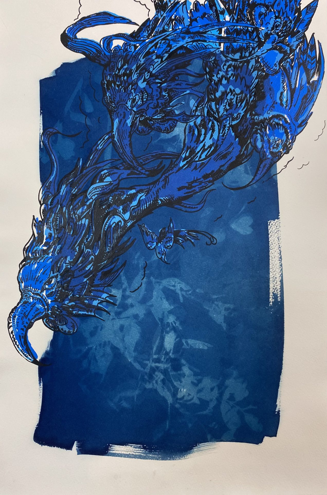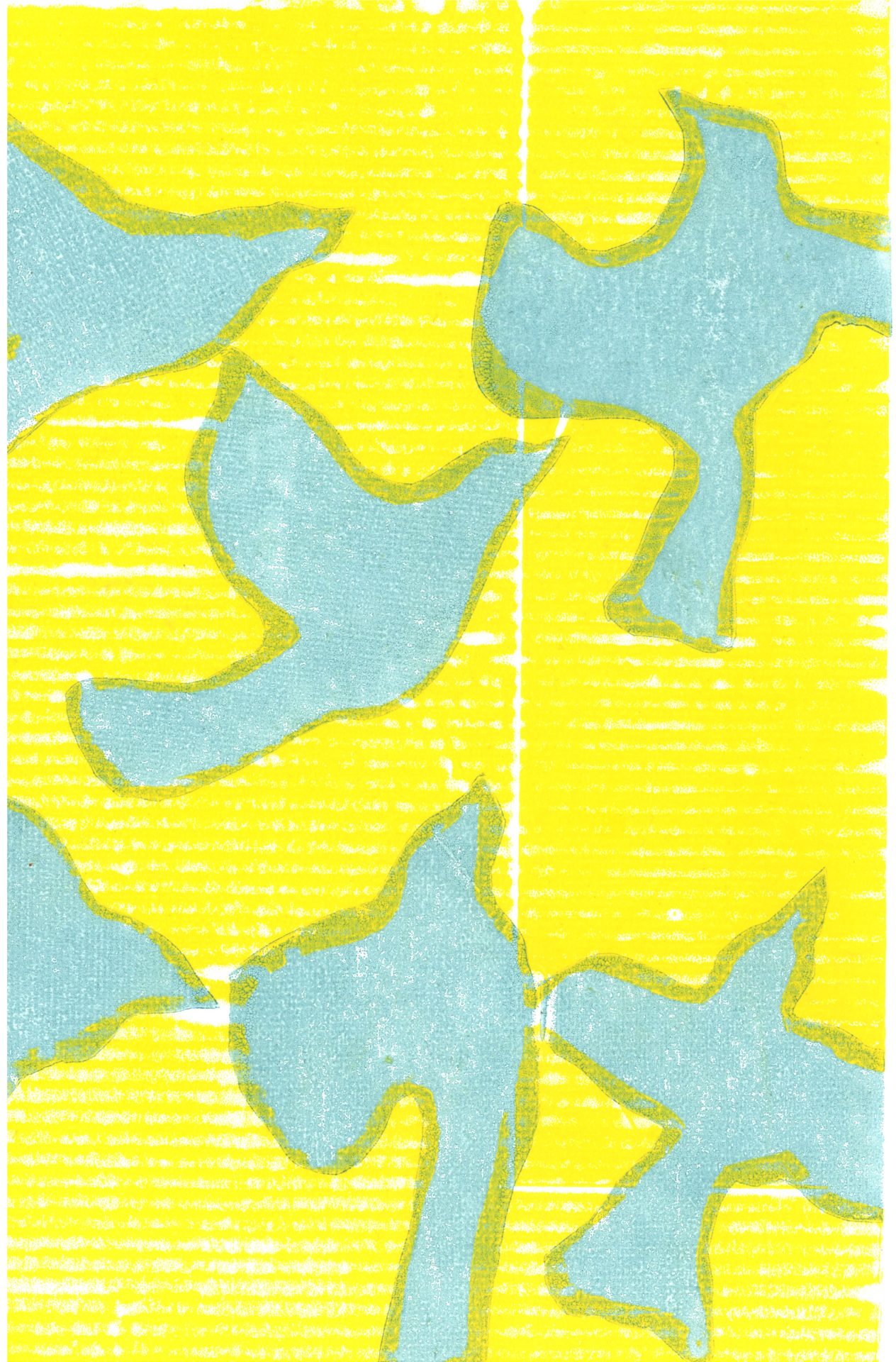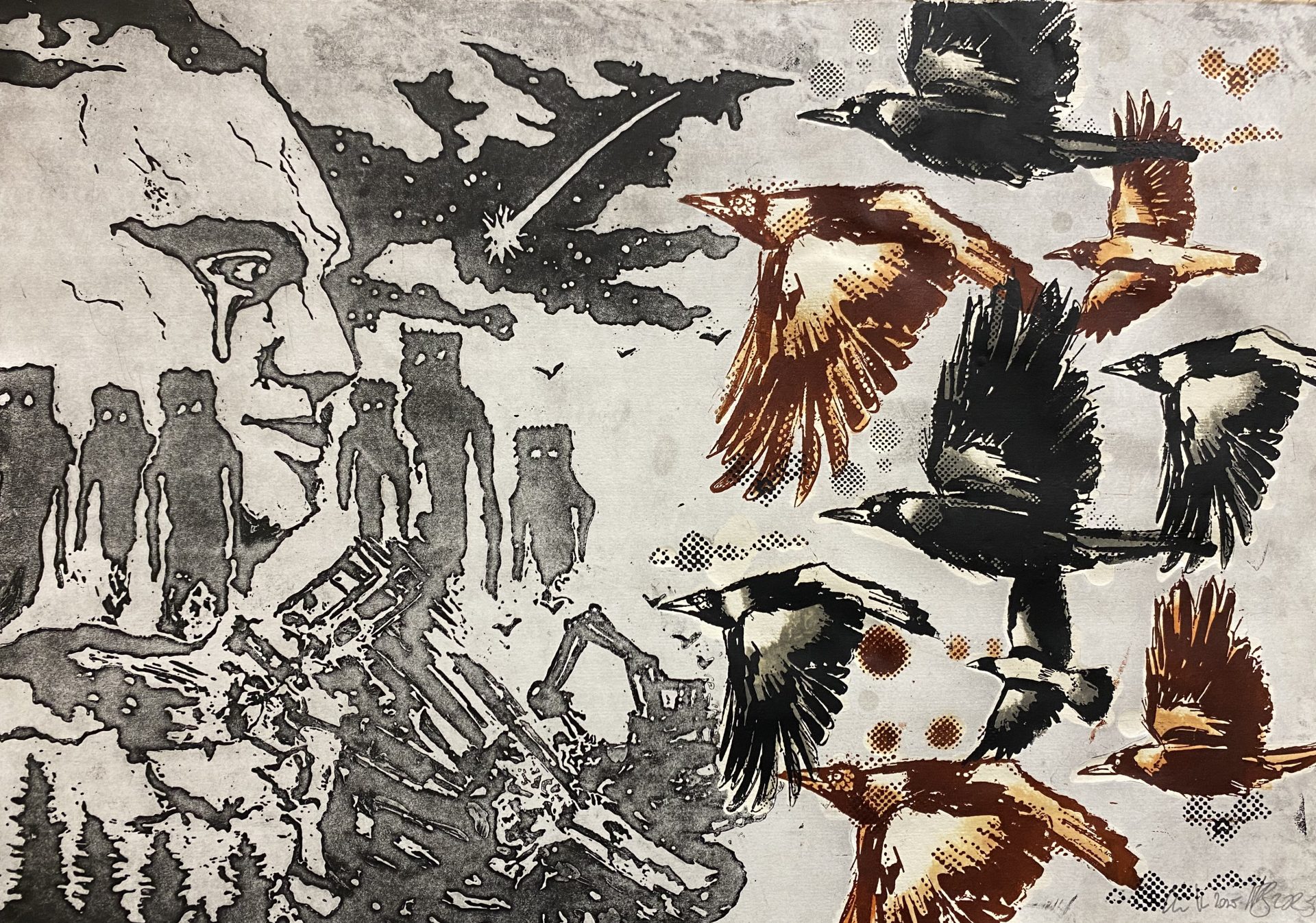 A collaborative printmaking project challenging participants to embrace experimentation and freedom in printmaking. Each participant provides a print to a member of the other collective who then responds to the artist’s imagery and approach. Each participant is relieved from conceiving an entire finished work, and instead, brings their own flavour, technique and finesse to another’s. The results are anyone’s guess!