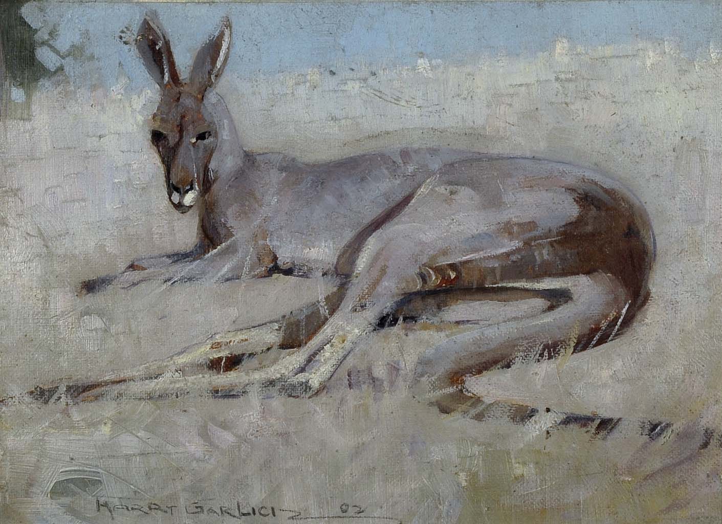 Image Credit: Harry Garlick, Resting Kangaroo, 1938, oil on canvas, 15.6cm x 22cm. Gift of Howard Hinton 1938. The Howard Hinton Collection.