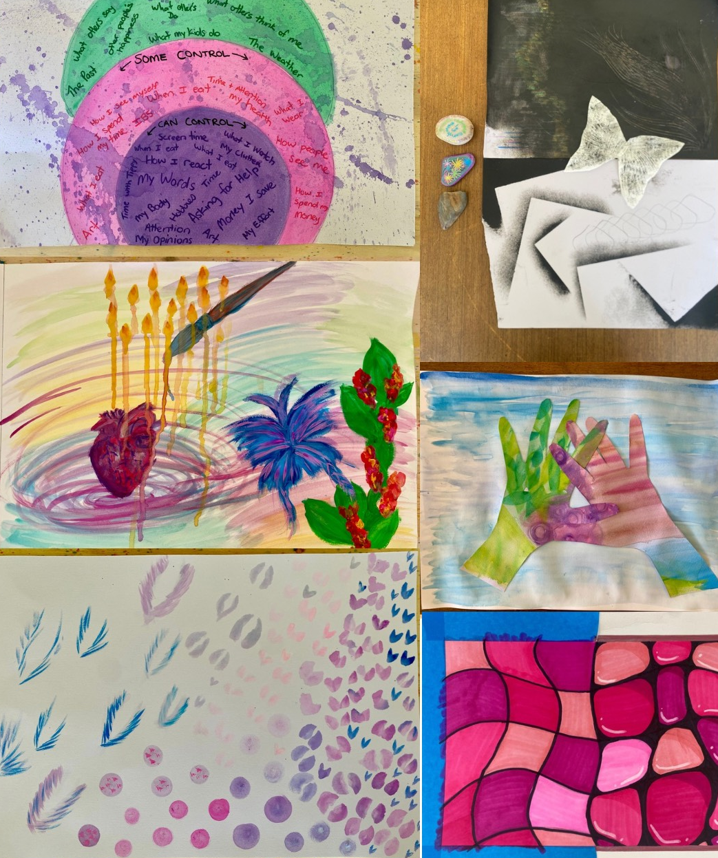 Intro to Art Therapy includes an experiential art making session, (all materials provided) and then being guided through a process where you will learn to “read” or decipher the information being communicated in your art.