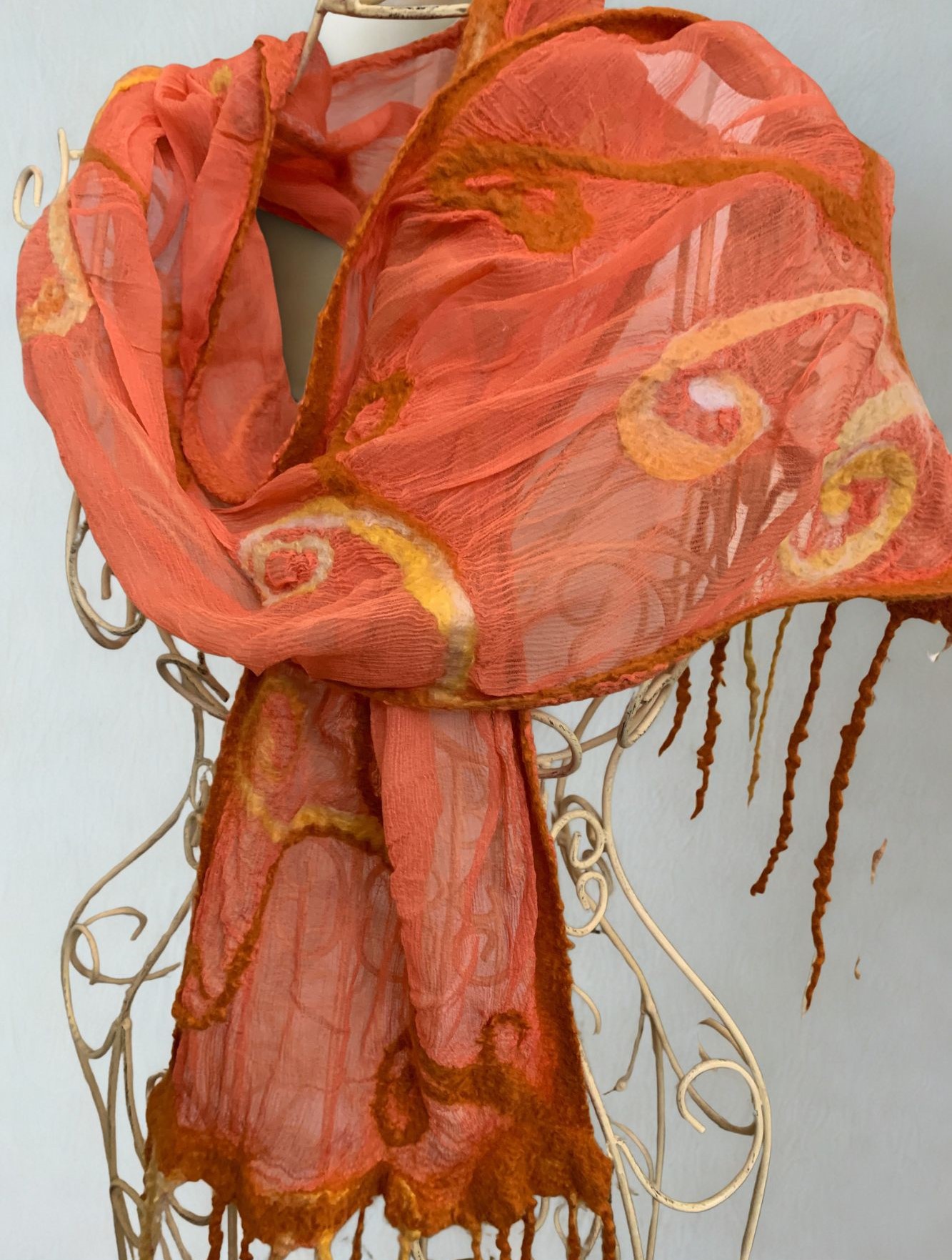 Create a beautifully lightweight nuno-felt scarf in this hands-on workshop, with experienced felter and teacher Jo Barr by combining silk and fine Australian Merino wool. Learn how these fibres fuse together to create soft, textured fabric with beautiful drape and movement. Participants will explore layout, design and surface texture while creating their own unique, one-of-a-kind wearable piece. Suitable for beginners and those with some experience, this workshop offers a relaxed and creative introduction to the art of nuno felting.