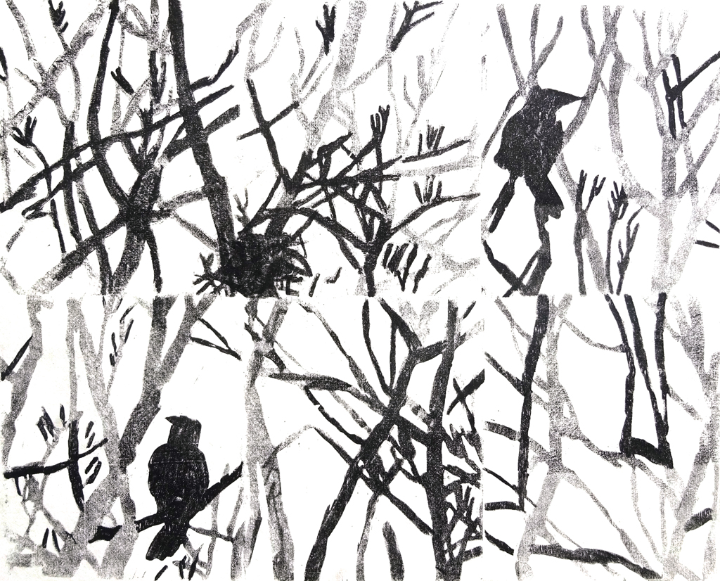 Image: Emily Simson, Early Lookout, Lino print, unique state, 41cm x 46cm