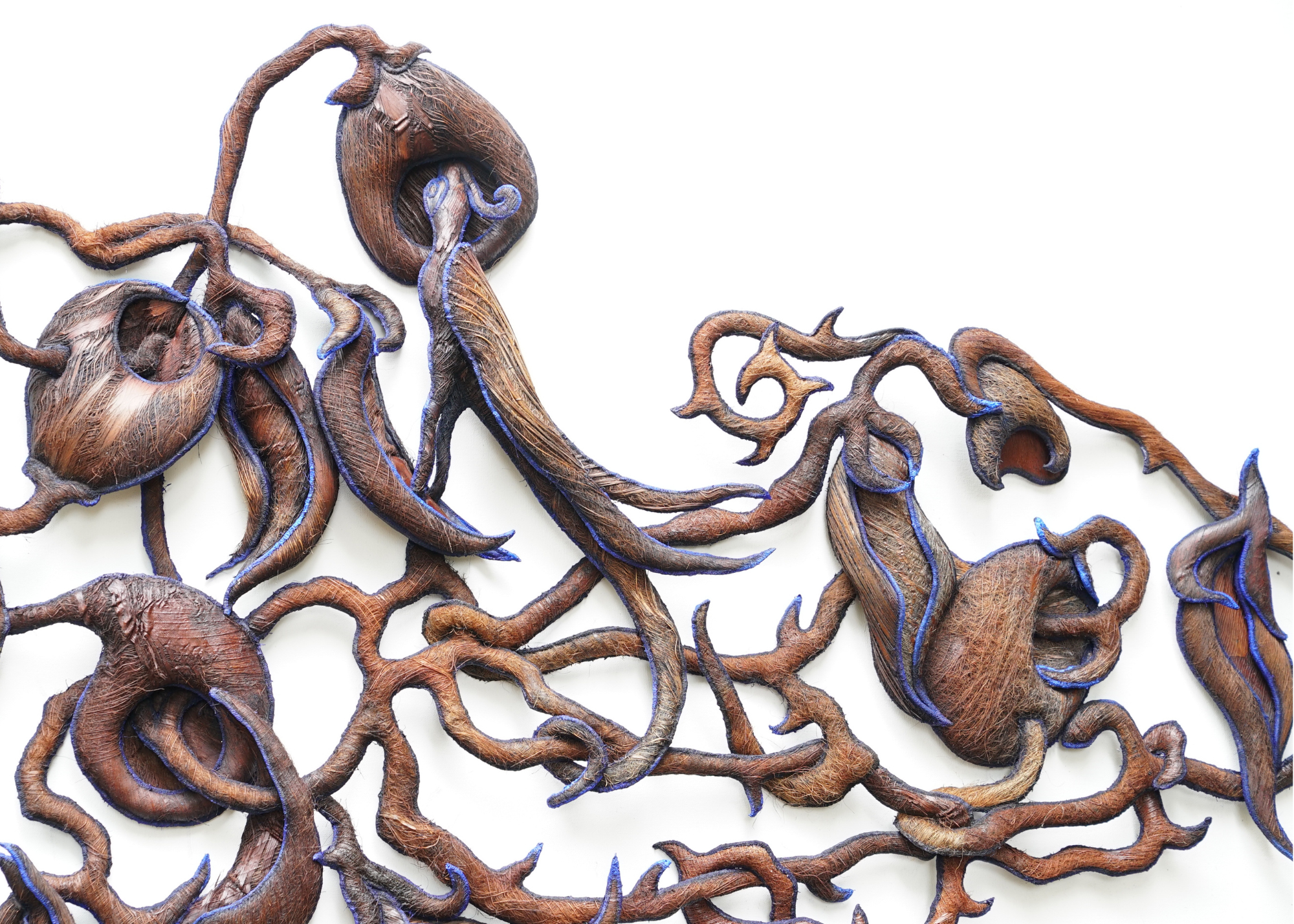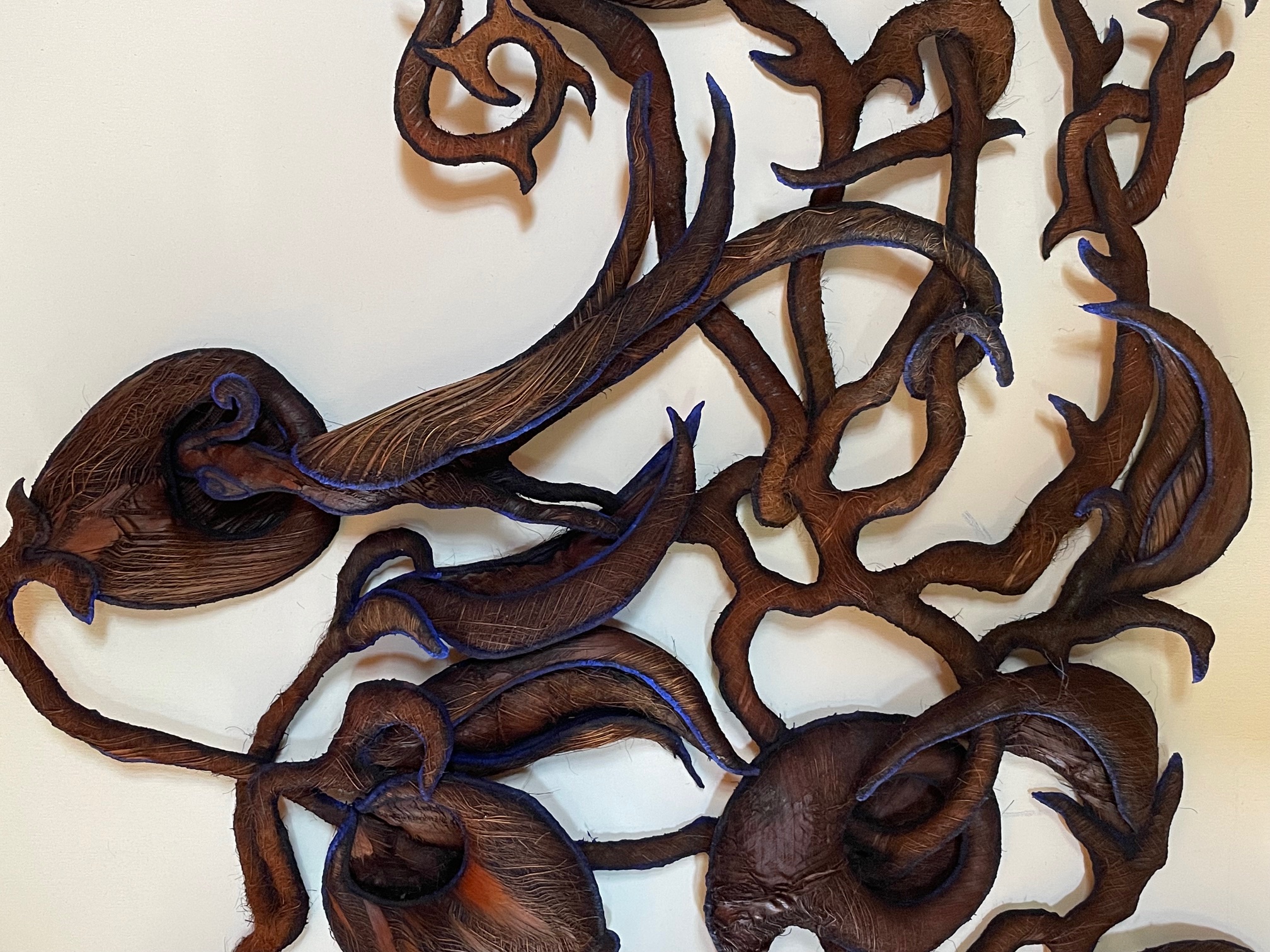 Credit: Lae Oldmeadow, The Garden (detail), 2010-2025, palm fibre, organic cotton, acrylic paint. Photograph by Nell Schofield.